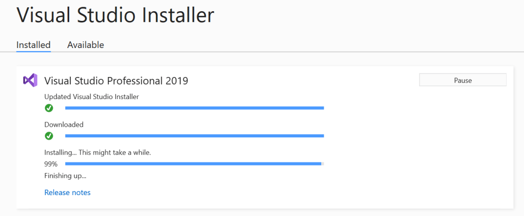 Visual Studio 2019 Installed